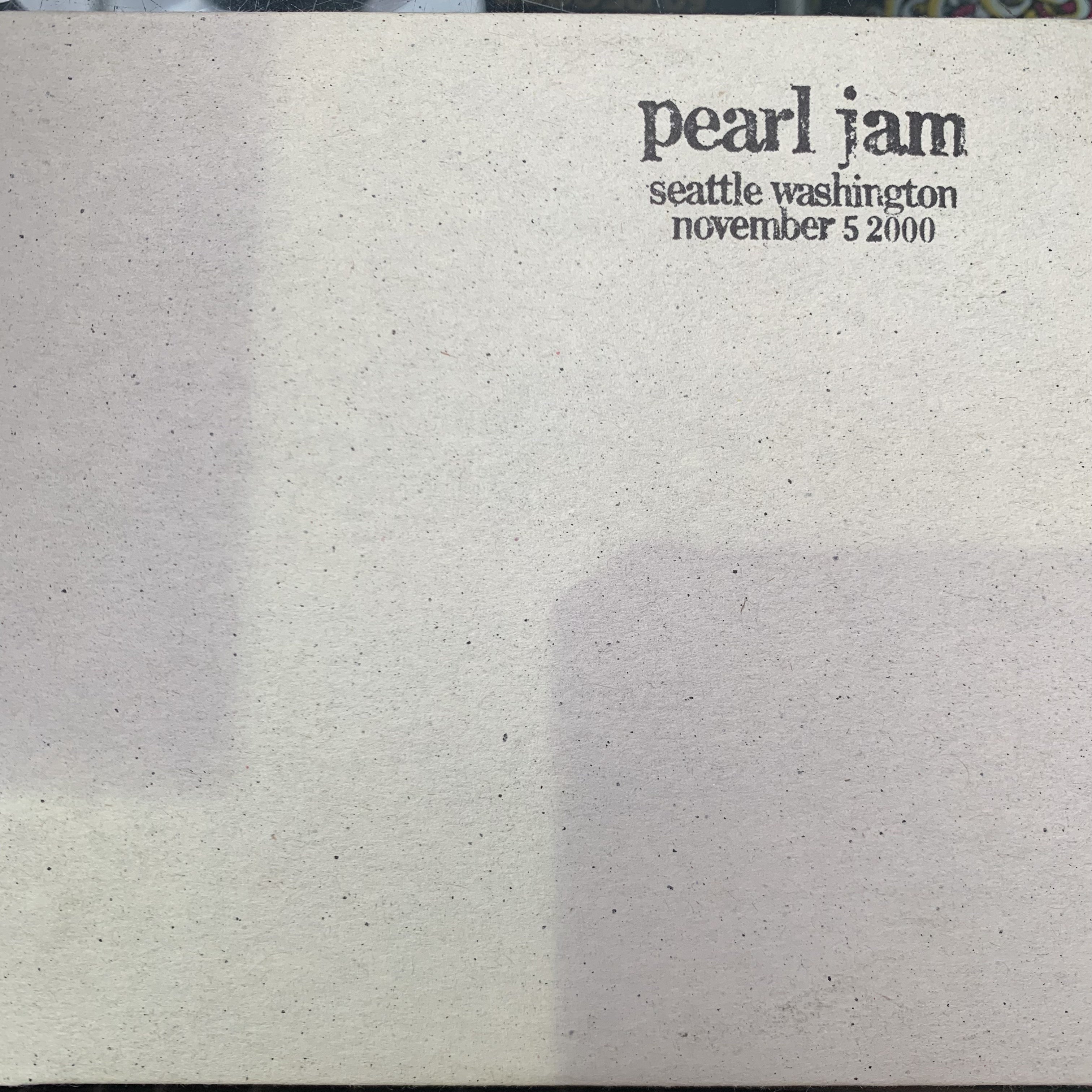PEARL JAM OFFICIAL BOOTLEG. LIVE IN SEATTLE, WASHINGTON, NOVEMBER 5 2000.