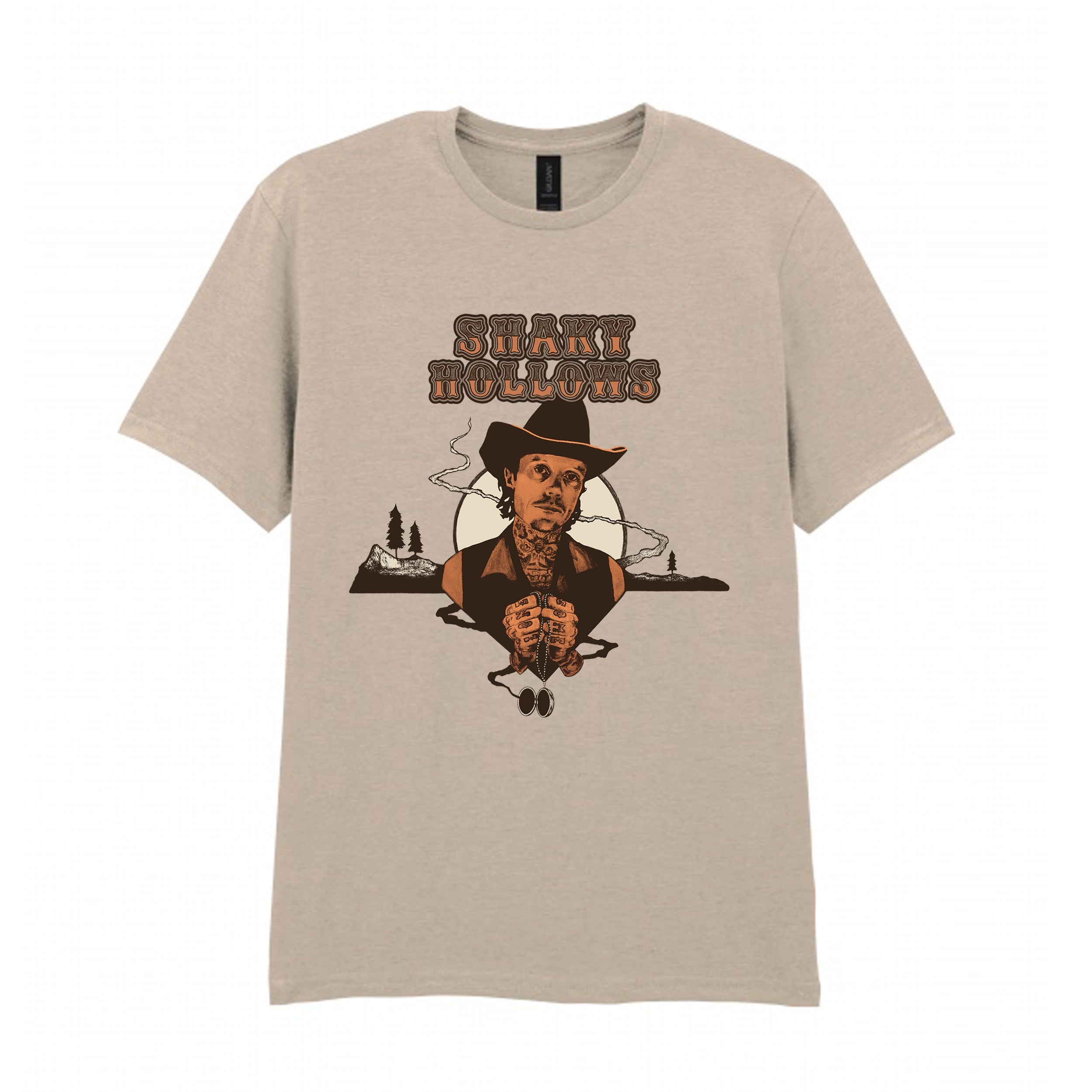 ŌTEPOTI ALT COUNTRY BAND SHAKY HOLLOWS - COWBOY T-SHIRT - SAND COLOUR